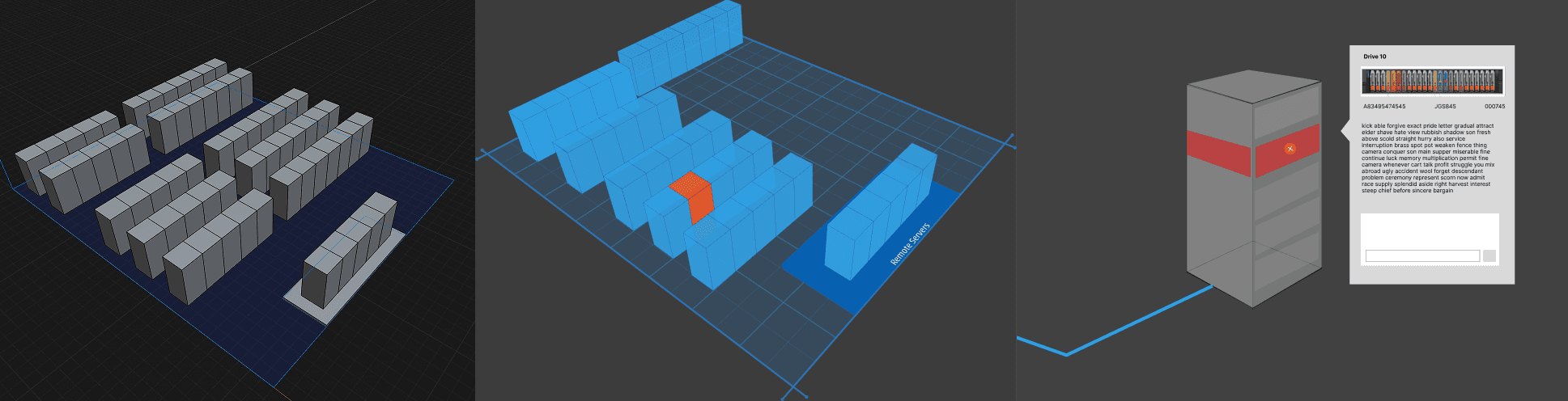 Teams wanted to move smoothly from a high-level environment view into racks and then into individual devices. This confirmed the need for both a bird’s-eye view and detailed drill-down states.