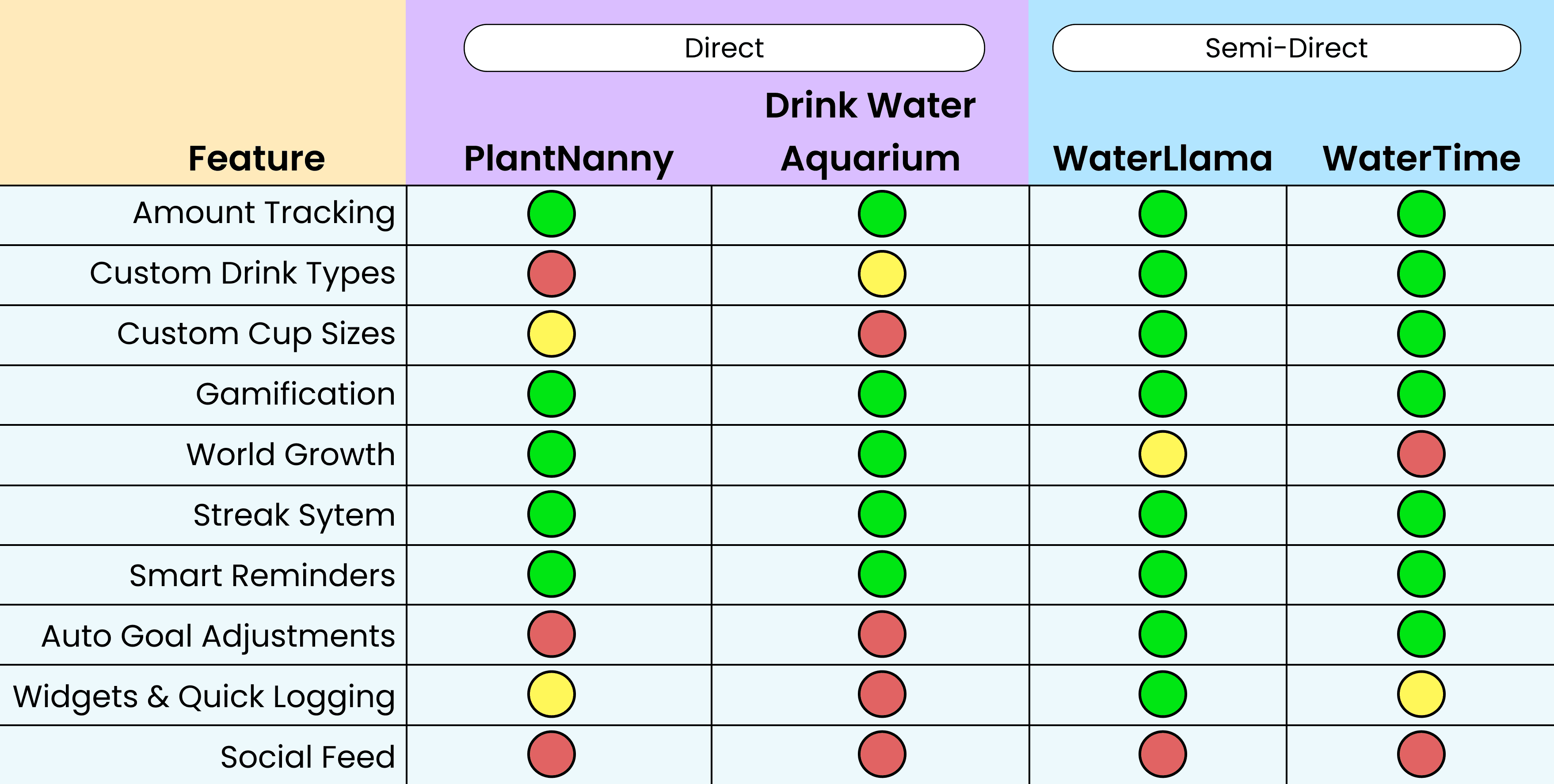 I conducted a competitive analysis to see what all was out there that felt similar to mine. This initial competitive analysis revealed there are many “hydration” apps, and several that focus on garden or aquarium.