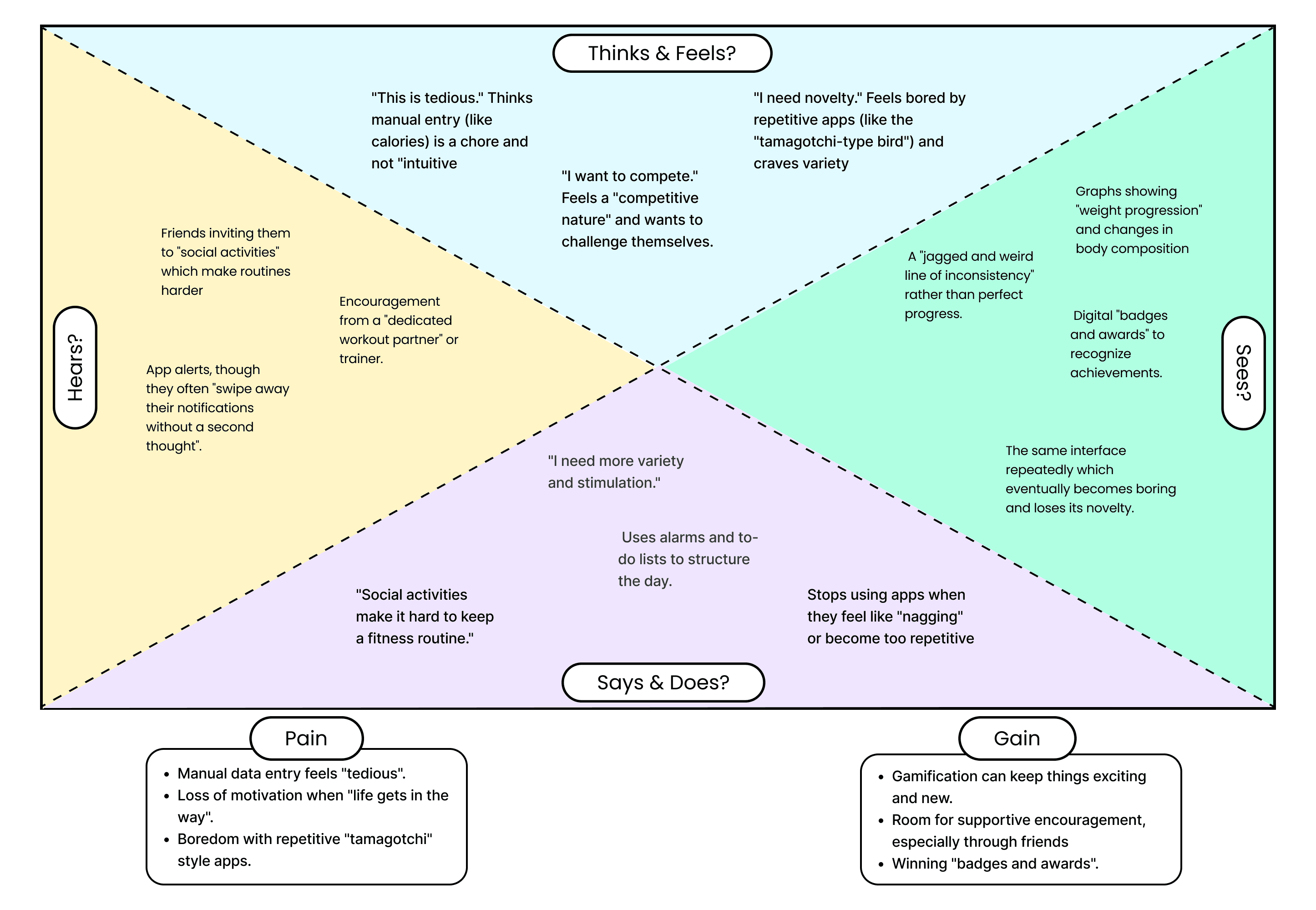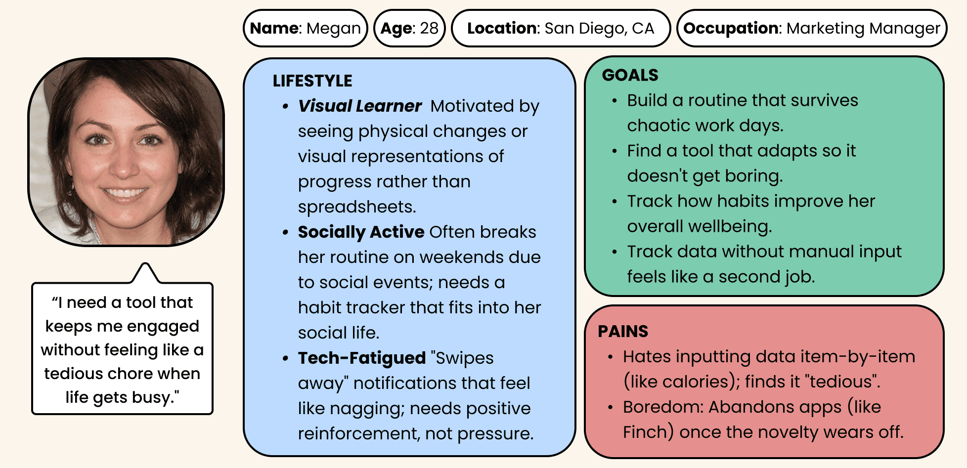 I followed up with three in-person interviews that helped clarify the emotional side: what feels supportive vs. stressful, and what actually helps people build consistency.
