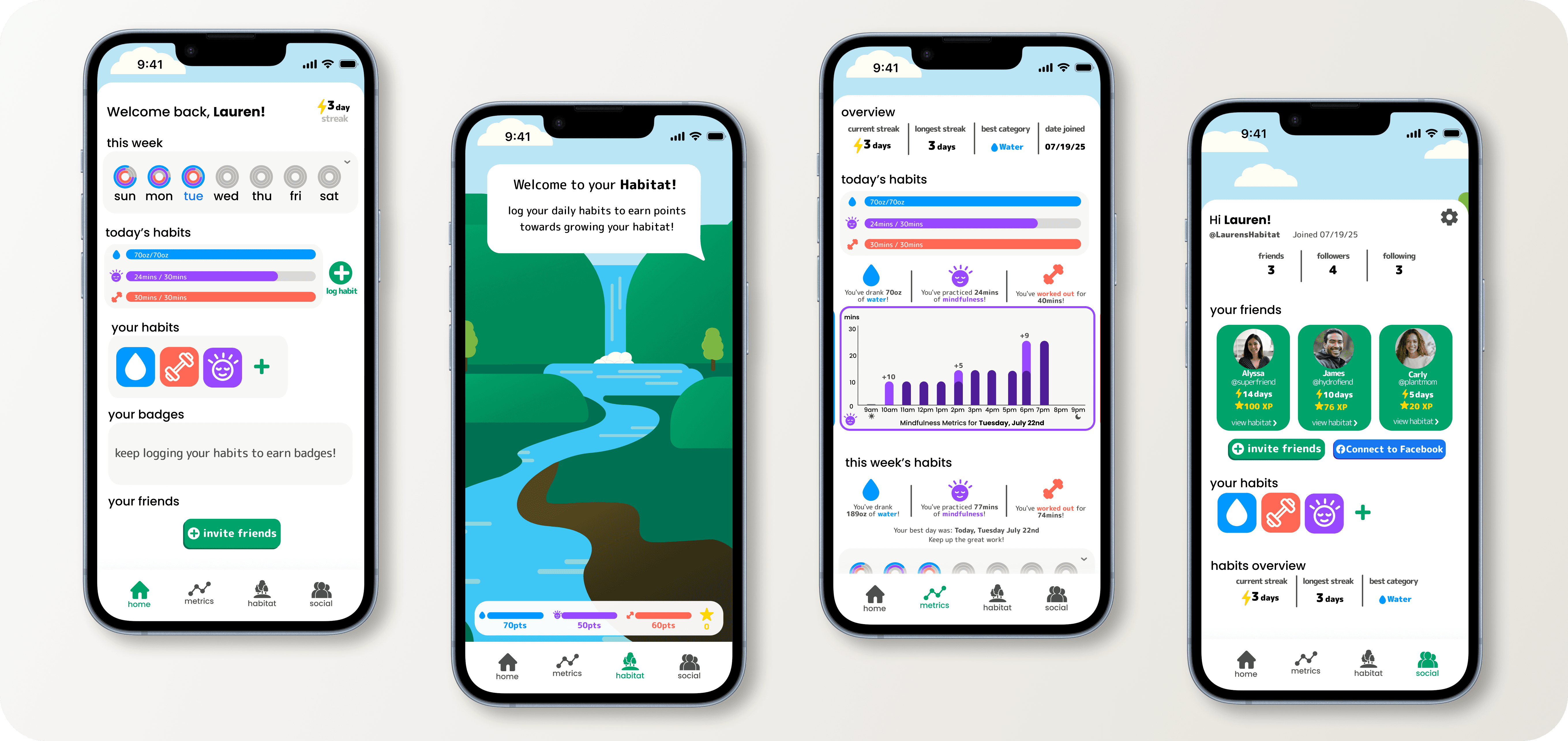 Many habit apps feel rigid, sterile, or limited to just one activity. When building healthy routines requires juggling multiple apps, the process stops feeling supportive and starts feeling overwhelming.